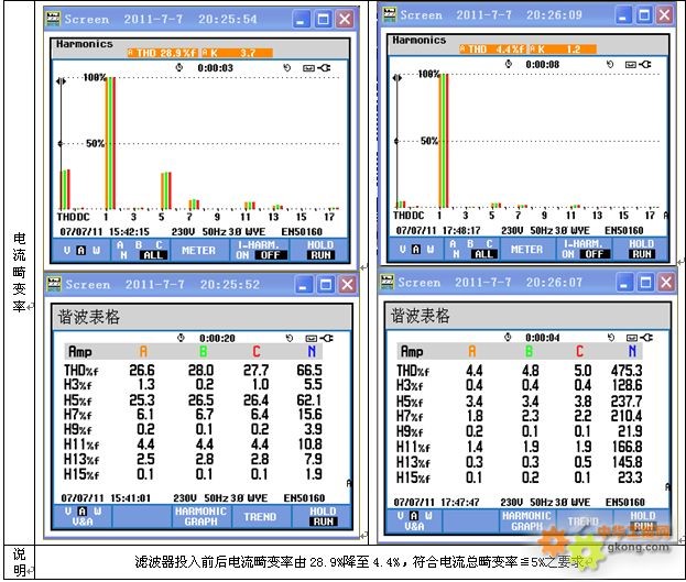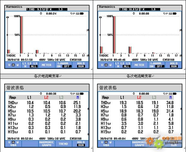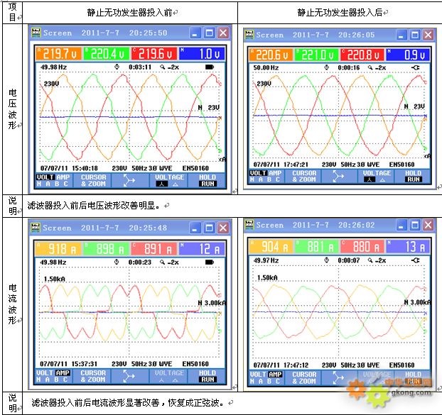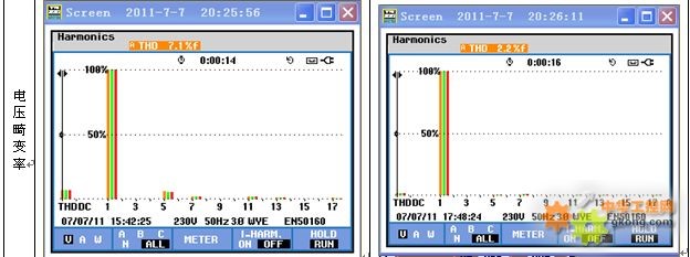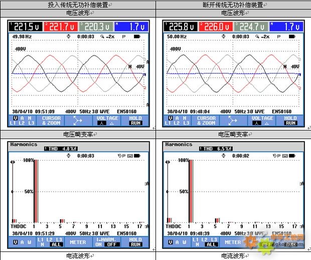通過(guò)測(cè)試浙江某大型船舶制造公司的一個(gè)船塢配電室傳統(tǒng)無(wú)功補(bǔ)償投入前后數(shù)據(jù)可以清晰看到傳統(tǒng)無(wú)功補(bǔ)償對(duì)諧波嚴(yán)重放大的情況。