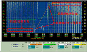 根據(jù)PID算法模型,高速運行時,收線放線伺服輸出偏差正負5轉(zhuǎn)以及張力擺動扭矩正負1牛。同時監(jiān)視主軸、張力、放線伺服的波形如下圖。其中,主軸波形圖如圖9所示。