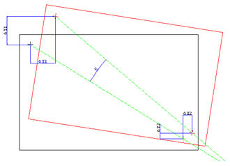 根據上位機軟件的計算,實際坐標之間的連線與理論坐標的連線就可獲知該板材的旋轉角度θ角。結合水平ΔX1,ΔX2以及垂直方向的ΔY1以及ΔY2,就可準確獲知板材的整體偏移及旋轉角度。