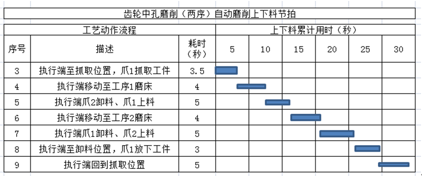 工序1、2磨削加工的時間為約2分30秒,因此機器人在作上下料輔助動作時會出現(xiàn)等待,同時也可適當放慢機器人動作速度、不會影響項目的整體加工節(jié)拍。