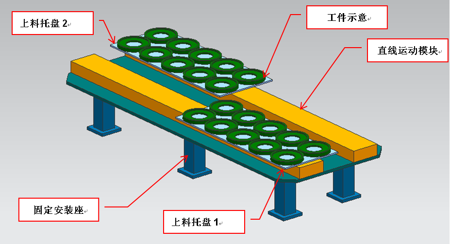 3、    上(下)料組件由直線模塊驅動工件托盤;