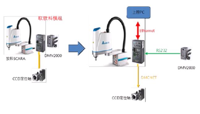 在該方案中,臺(tái)達(dá)提供4臺(tái)SCARA工業(yè)機(jī)器人DRS60L系列、4套新一代多鏡頭機(jī)器視覺系統(tǒng)DMV2000-80GX,并為螺絲檢測(cè)包裝制程提供程序編寫指導(dǎo)、SCARA使用培訓(xùn)、DMV2000-80GX設(shè)定與軸控API使用教學(xué)以及各軸之間的伺服調(diào)節(jié)協(xié)助。該方案采用高生產(chǎn)適應(yīng)性的流水線架構(gòu),模塊化構(gòu)成,通過“自動(dòng)化取放料站概念”和“視覺辨識(shí)”實(shí)現(xiàn)快速換料或擴(kuò)種物料種類的動(dòng)作,方便實(shí)用。同時(shí),該方案采取臺(tái)達(dá)DMCNET總線架構(gòu),實(shí)現(xiàn)“分類-包裝”整線運(yùn)行,與不同上位架構(gòu)結(jié)合,更具彈性。
