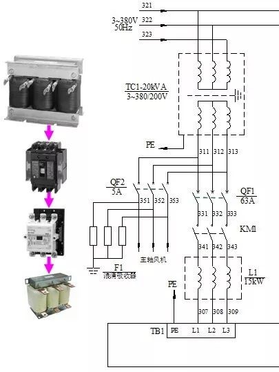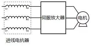 而電網(wǎng)電壓突變和操作過電壓引起的電流沖擊、諧波干擾、電壓中包含的尖峰脈沖等,對(duì)伺服放大器回路中的敏感元件損害很大。伺服放大器前加裝電抗器(稱為進(jìn)線電抗器,line reactor),就能保護(hù)驅(qū)動(dòng)裝置免受以上沖擊,如圖1所示。