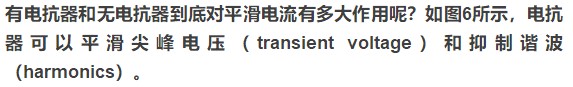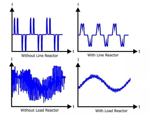 可見,通過電抗器的電流頻率越大,阻抗就越大,這就是電抗器能夠平滑尖峰電壓、抑制諧波的原理(戳藍(lán)字看諧波)。