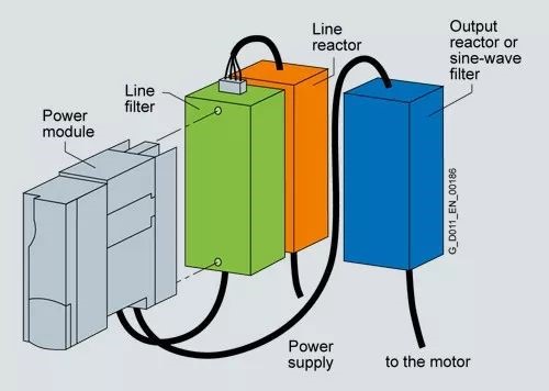 電抗器裝在變頻器和電機(jī)之間,稱為負(fù)載電抗器(load reactor)或輸出電抗器,以保護(hù)電機(jī),如圖4所示。
