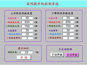 針對(duì)層間提升機(jī)系統(tǒng),其定位、運(yùn)動(dòng)速度精度要求不高,只要求系統(tǒng)行程、速度連續(xù)可調(diào),運(yùn)行過(guò)程中平穩(wěn)可靠即可。因此我們采用了臺(tái)達(dá)性能可靠的PLC、性價(jià)比高的通用變頻器、高真彩觸摸屏及編碼器產(chǎn)品來(lái)控制層間提升機(jī)。